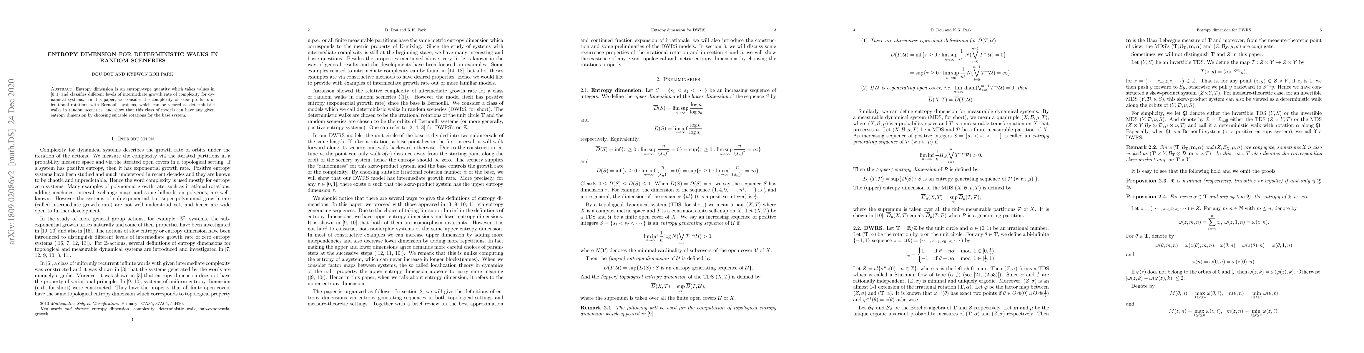 This paper explores entropy dimension in deterministic walks within random environments, specifically skew products of irrational rotations with Bernoulli systems. It demonstrates that these models can exhibit any entropy dimension by appropriately selecting the base system's rotations.