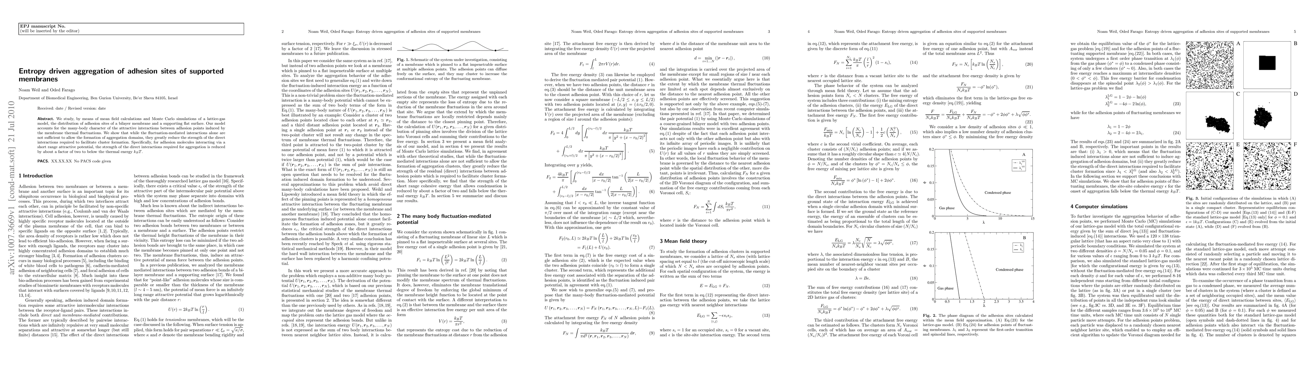 This paper investigates the aggregation of adhesion sites in supported membranes using mean field calculations and Monte Carlo simulations. It finds that thermal fluctuations reduce the strength of direct interactions needed for cluster formation, lowering it by a factor of two to below thermal energy.