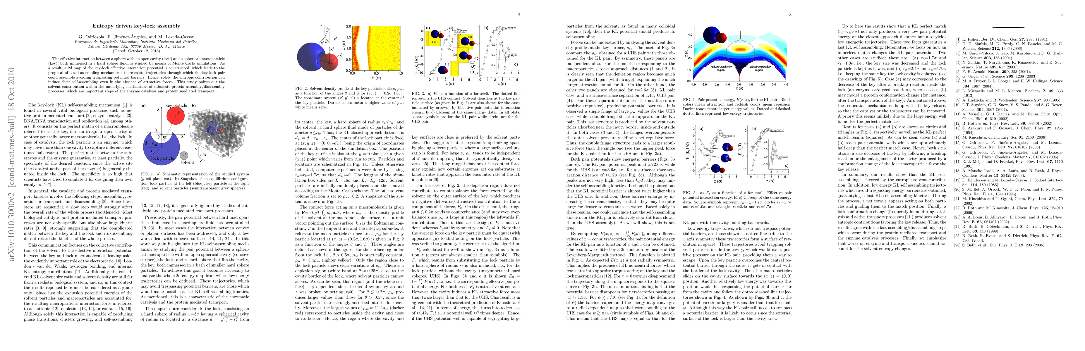 Researchers used Monte Carlo simulations to study how a key can assemble with a lock in a fluid, finding that entropy plays a crucial role in their self-assembling process, even without attractive forces.