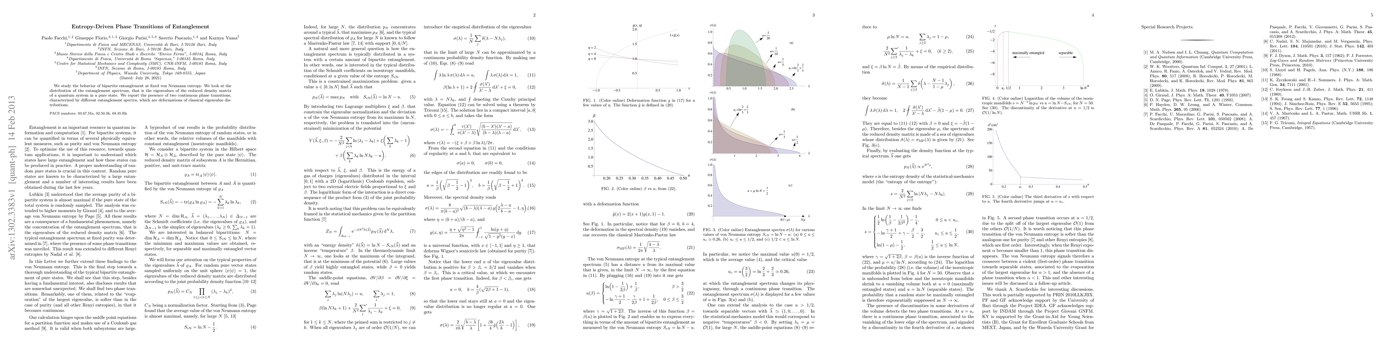 This paper investigates the entanglement behavior in bipartite quantum systems at fixed von Neumann entropy, revealing two continuous phase transitions marked by distinct entanglement spectra that differ from classical eigenvalue distributions.