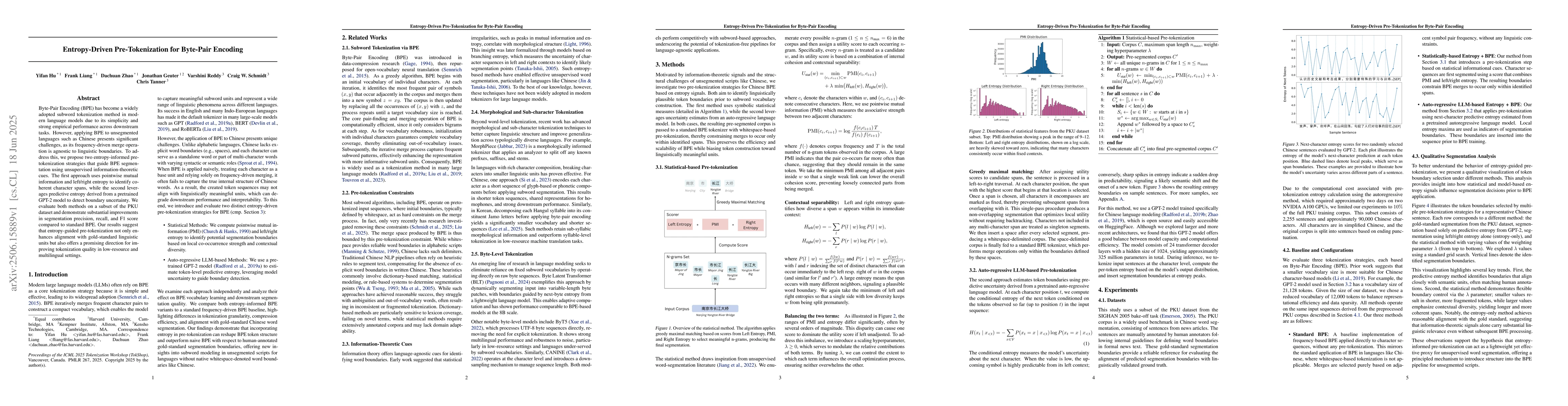 This work differs from existing research on pre-tokenization by leveraging character-level entropy to improve the robustness and efficiency of the process.