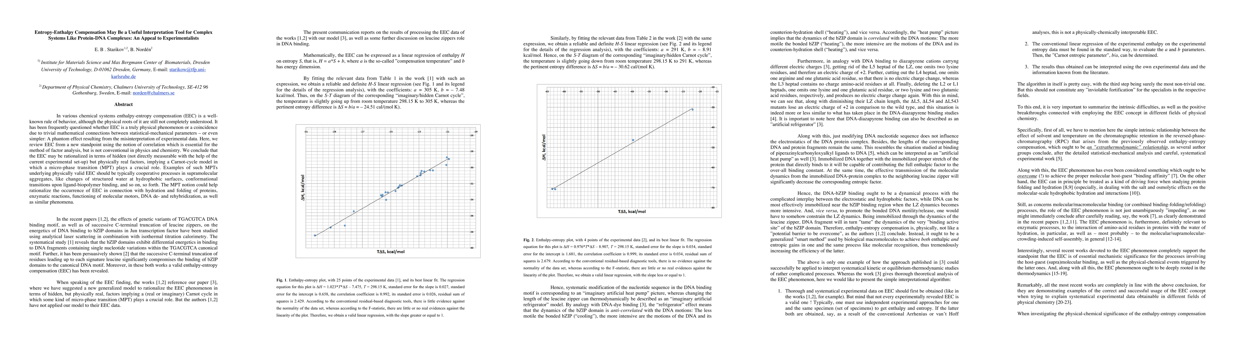 Research suggests that entropy-enthalpy compensation in complex systems like protein-DNA complexes can be explained by physically real factors, such as micro-phase transitions, which underlie cooperative processes.
