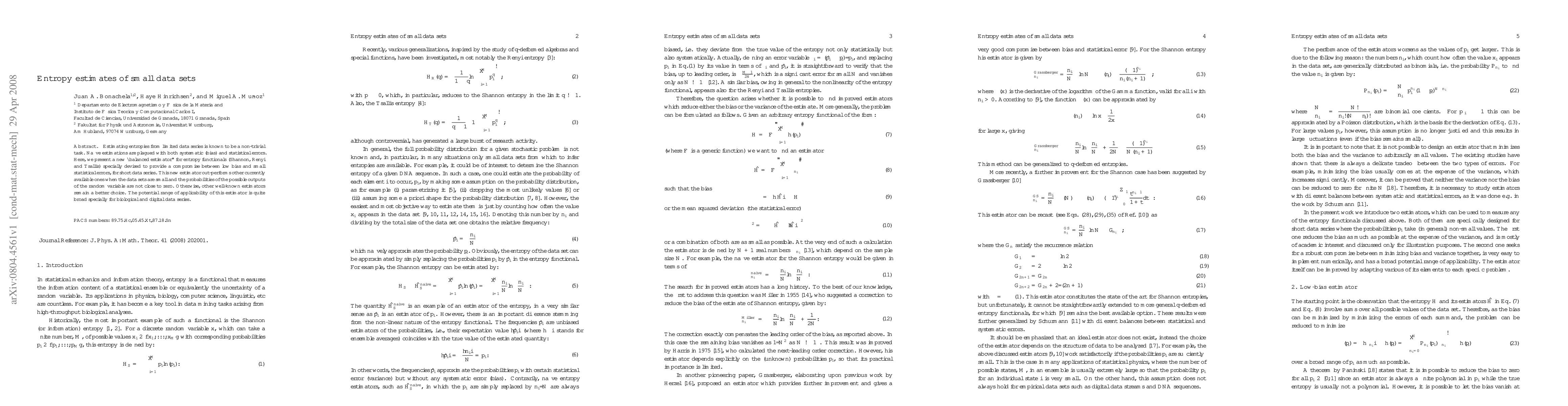 A new estimator for entropy functionals outperforms existing methods when dealing with small data sets, offering a balance between bias and statistical errors.