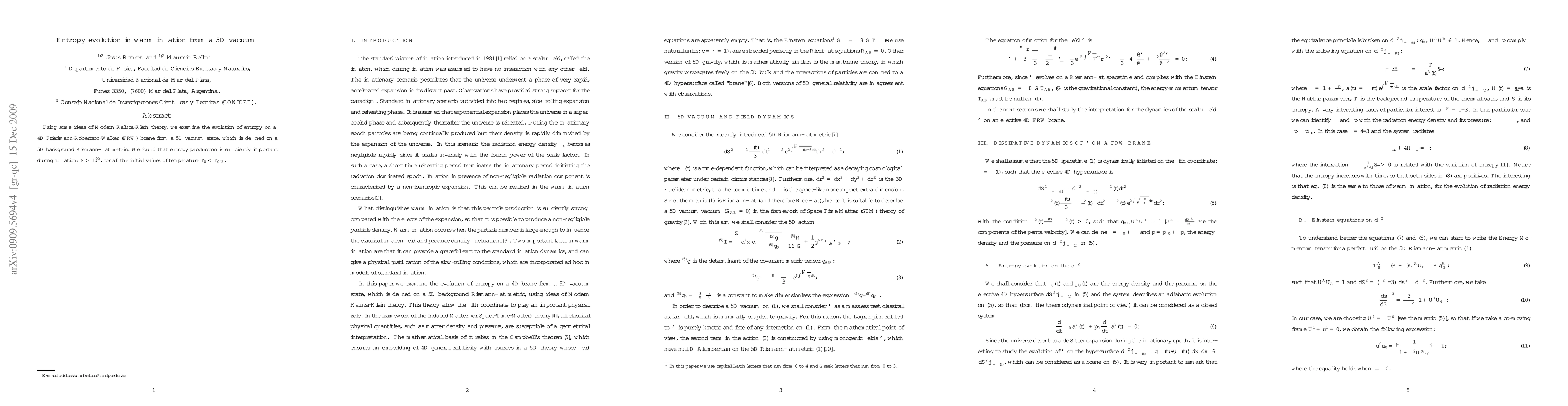 Inflationary entropy production is significant in warm inflation from a 5D vacuum state, with entropy exceeding $10^{90}$ for initial temperatures below the Grand Unified Theory threshold.