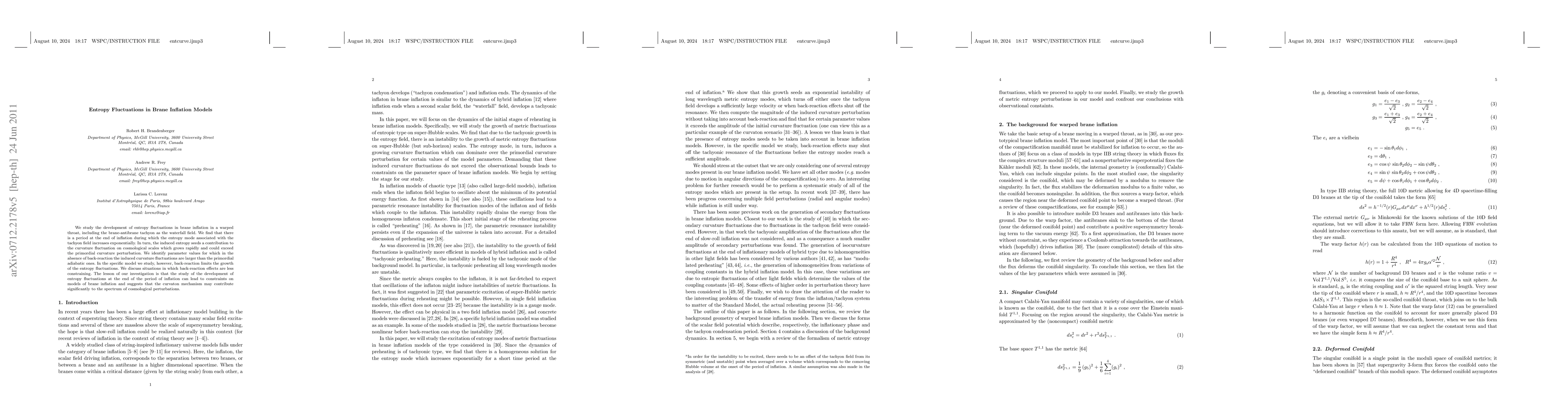 We study the development of entropy fluctuations in brane inflation in a warped throat, including the brane-antibrane tachyon as the waterfall field. We find that there is a period at the end of inflation during which the entropy mode associated with the tachyon field increases exponentially. In turn, the induced entropy seeds a contribution to the curvature fluctuation on cosmological scales which grows rapidly and could exceed the primordial curvature perturbation. We identify parameter values for which in the absence of back-reaction the induced curvature fluctuations are larger than the primordial adiabatic ones. In the specific model we study, however, back-reaction limits the growth of the entropy fluctuations. We discuss situations in which back-reaction effects are less constraining. The lesson of our investigation is that the study of the development of entropy fluctuations at the end of the period of inflation can lead to constraints on models of brane inflation and suggests that the curvaton mechanism may contribute significantly to the spectrum of cosmological perturbations.