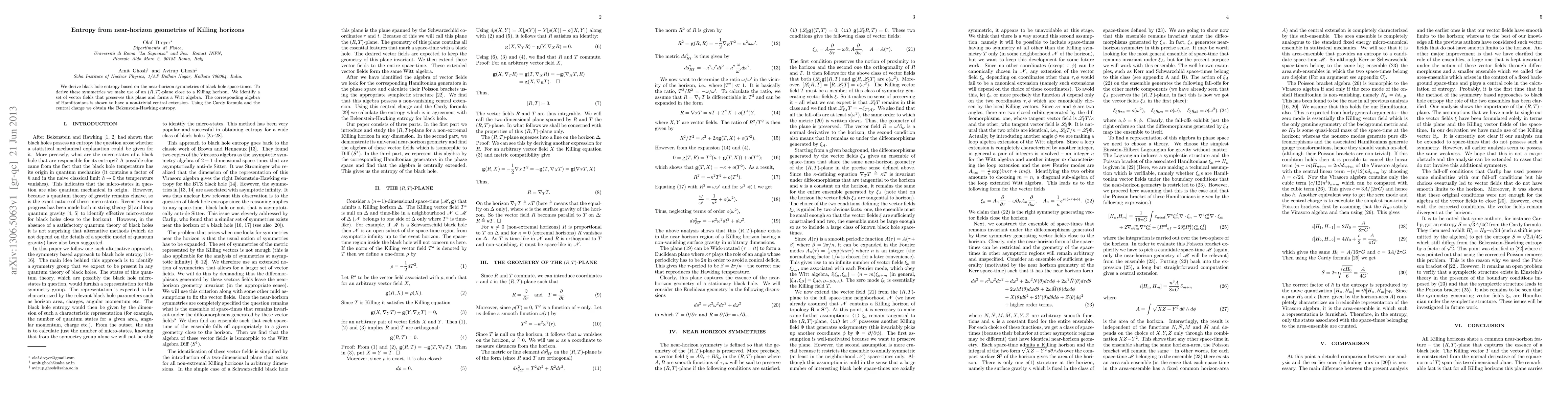 This paper derives black hole entropy by analyzing the near-horizon symmetries of black hole spacetimes, identifying a Witt algebra of vector fields, and applying the Cardy formula to obtain the Bekenstein-Hawking entropy using the central charge of the algebra.