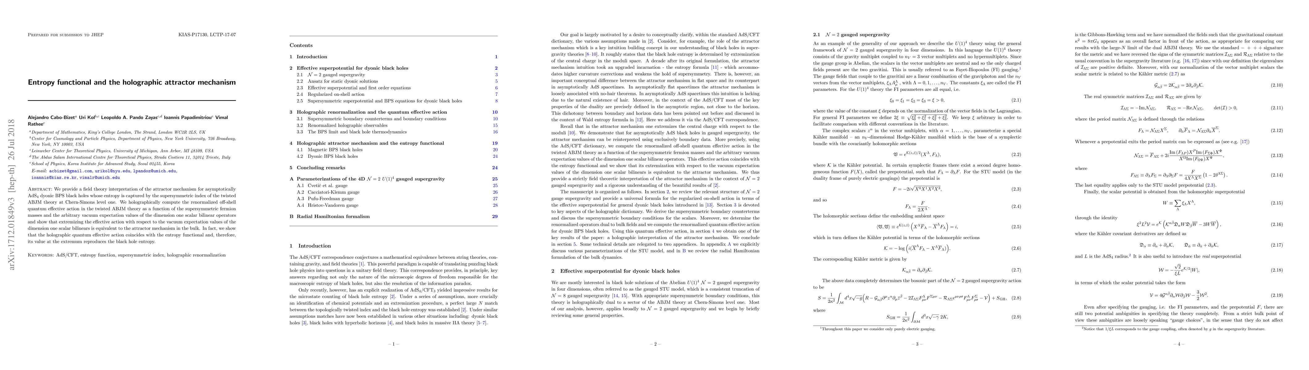 We provide a field theory interpretation of the attractor mechanism for asymptotically AdS$_4$ dyonic BPS black holes whose entropy is captured by the supersymmetric index of the twisted ABJM theory at Chern-Simons level one. We holographically compute the renormalized off-shell quantum effective action in the twisted ABJM theory as a function of the supersymmetric fermion masses and the arbitrary vacuum expectation values of the dimension one scalar bilinear operators and show that extremizing the effective action with respect to the vacuum expectation values of the dimension one scalar bilinears is equivalent to the attractor mechanism in the bulk. In fact, we show that the holographic quantum effective action coincides with the entropy functional and, therefore, its value at the extremum reproduces the black hole entropy.