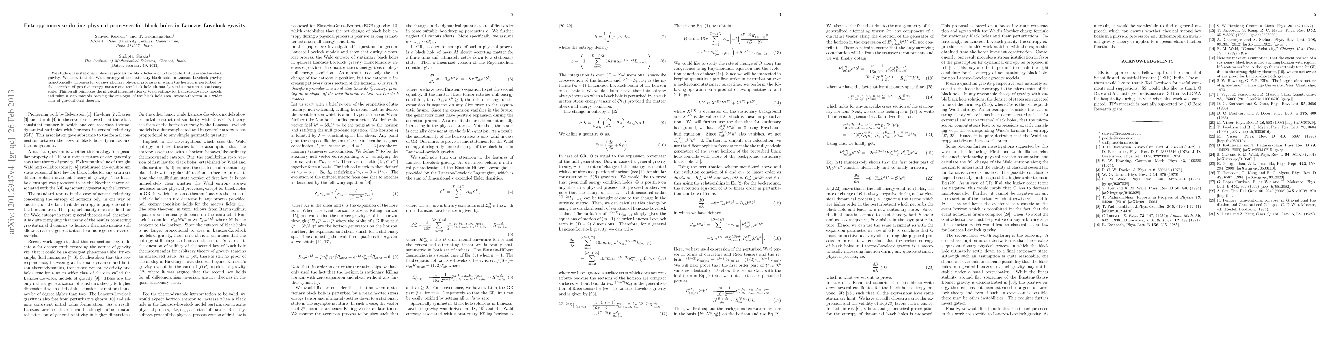 We study quasi-stationary physical process for black holes within the context of Lanczos-Lovelock gravity. We show that the Wald entropy of stationary black holes in Lanczos-Lovelock gravity monotonically increases for quasi-stationary physical processes in which the horizon is perturbed by the accretion of positive energy matter and the black hole ultimately settles down to a stationary state. This result reinforces the physical interpretation of Wald entropy for Lanczos-Lovelock models and takes a step towards proving the analogue of the black hole area increase-theorem in a wider class of gravitational theories.