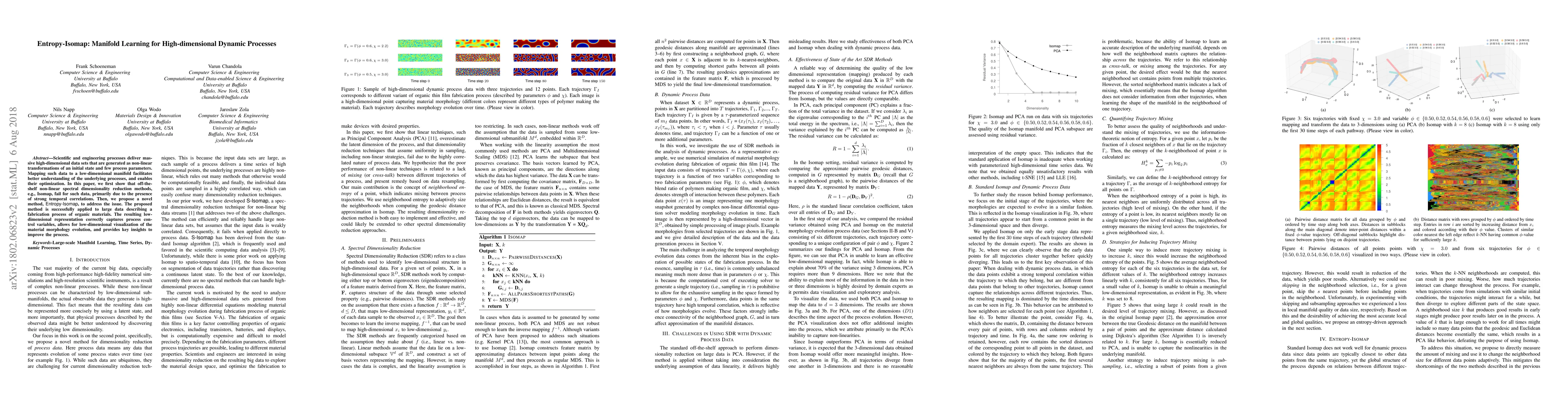 This paper introduces Entropy-Isomap, a novel method for mapping high-dimensional dynamic processes to a low-dimensional manifold, addressing the limitations of traditional Isomap in handling strong temporal correlations. The method successfully applies to organic material fabrication processes, enabling better visualization and optimization.