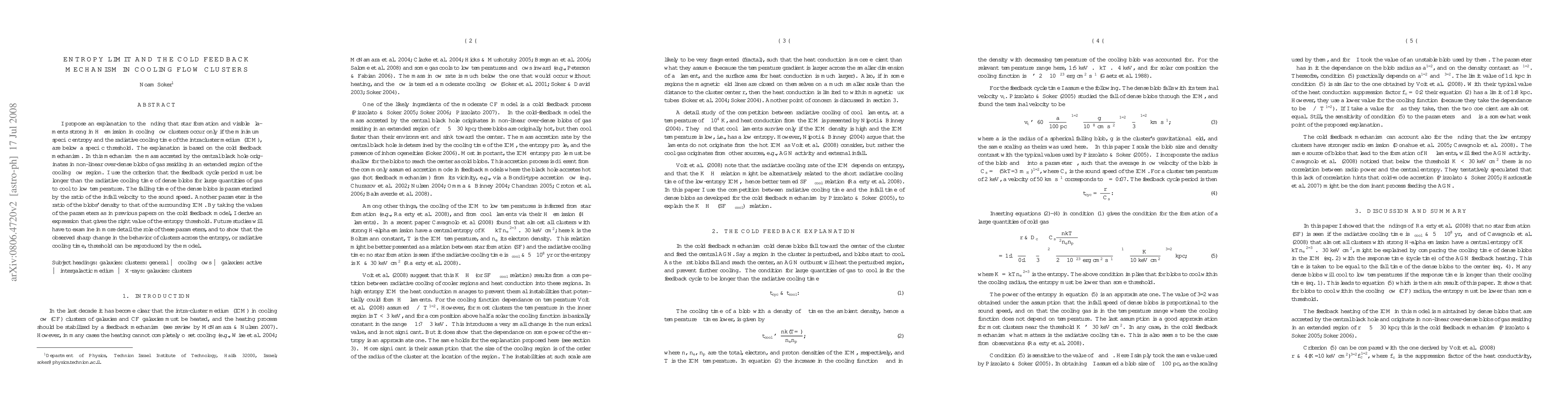 The paper presents a detailed explanation of the cold feedback mechanism, deriving an expression for the entropy threshold that accounts for the competition between radiative cooling time and the infall time of dense blobs.