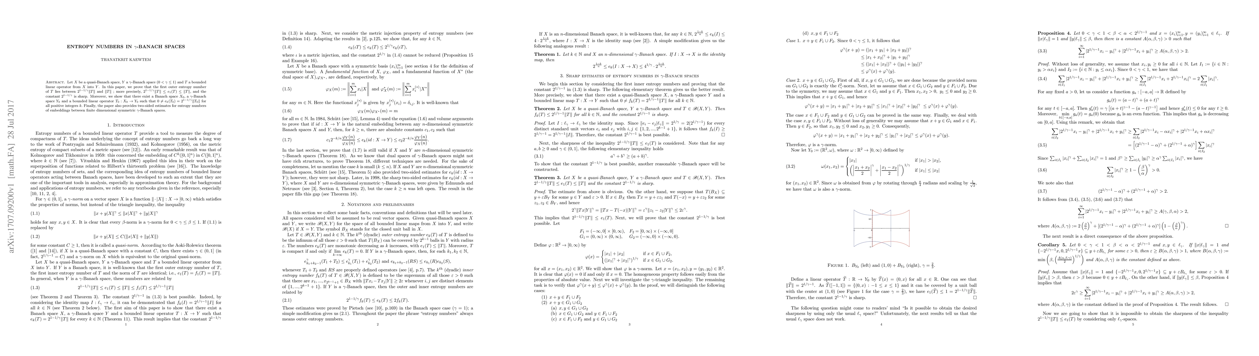 The paper employs techniques from functional analysis, specifically focusing on $\gamma$-Banach spaces, quasi-Banach spaces, and entropy numbers of bounded linear operators between these spaces.