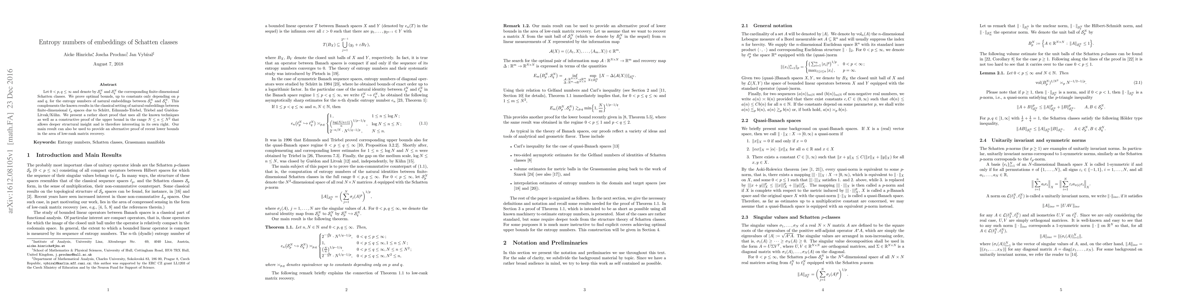 This paper establishes optimal bounds for entropy numbers of embeddings between finite-dimensional Schatten classes $\mathcal S_p^N$ and $\mathcal S_q^N$, extending known results for $\ell_p$ spaces. It provides a concise proof and a constructive upper bound proof that offers structural insights, with applications to low-rank matrix recovery.