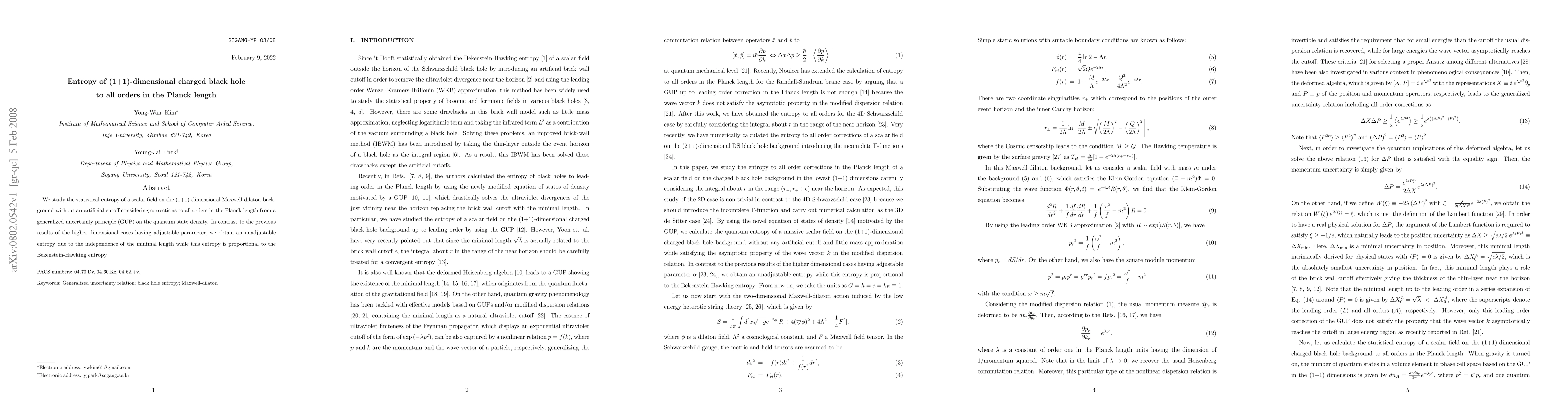 This paper investigates the entropy of a (1+1)-dimensional charged black hole, deriving it to all orders in the Planck length using a generalized uncertainty principle. Unlike higher-dimensional cases, the entropy is found to be unadjustable and directly proportional to the Bekenstein-Hawking entropy.
