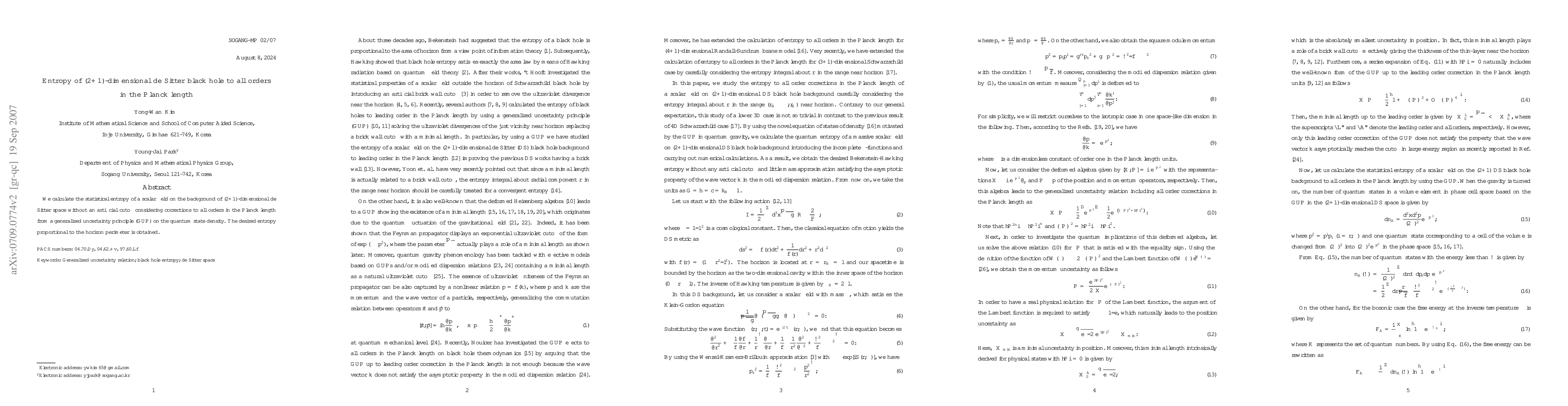 This paper calculates the statistical entropy of a scalar field in (2+1)-dimensional de Sitter space, incorporating corrections to all orders in the Planck length based on a generalized uncertainty principle, yielding an entropy proportional to the horizon perimeter.