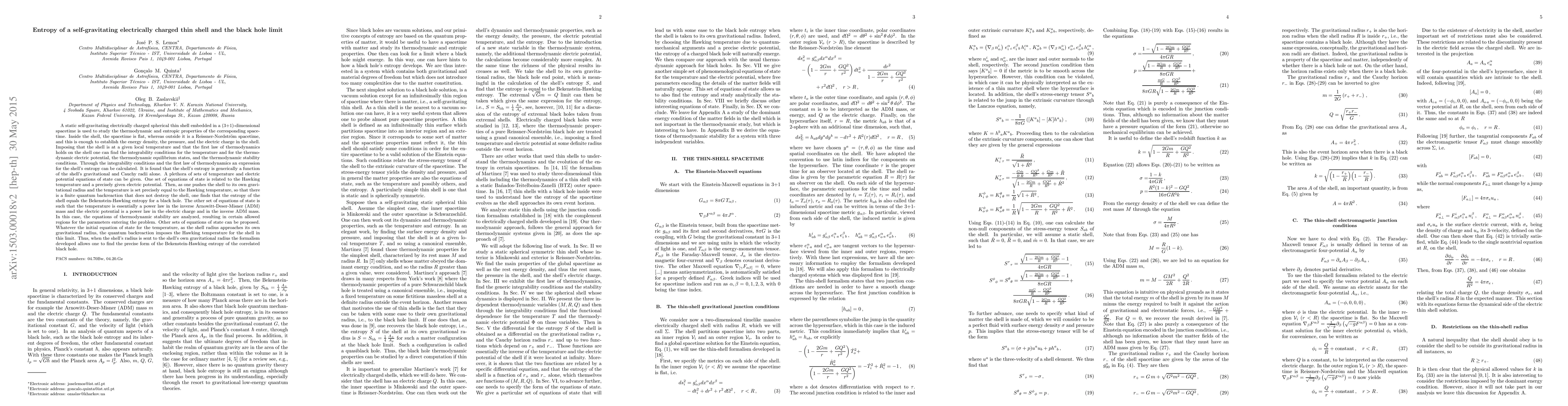 A static self-gravitating electrically charged spherical thin shell embedded in a (3+1)-dimensional spacetime is used to study the thermodynamic and entropic properties of the corresponding spacetime. Inside the shell, the spacetime is flat, outside it is Reissner-Nordstr\"om, and this establishes the energy density, the pressure, and the electric charge in the shell. Imposing that the shell is at a given local temperature and that the first law of thermodynamics holds on the shell one can find the integrability conditions for the temperature and for the thermodynamic electric potential, the thermodynamic equilibrium states, and the thermodynamic stability conditions. Through the integrability conditions and the first law of thermodynamics an expression for the shell's entropy can be calculated. It is found that the shell's entropy is a function of the shell's gravitational and Cauchy radii alone. A plethora of sets of temperature and electric potential equations of state can be given. One set of equations of state is related to the Hawking temperature and a precisely given electric potential. Then, as one pushes the shell to its own gravitational radius and the temperature is set precisely equal to the Hawking temperature, so that there is a finite quantum backreaction, one finds that the entropy of the shell equals the Bekenstein-Hawking entropy for a black hole. Other set of equations of state are given and the thermodynamic properties analyzed. Whatever the initial equation of state for the temperature, as the shell radius approaches its own gravitational radius, the quantum backreaction imposes the Hawking temperature for the shell in this limit. Thus, when the shell's radius is sent to the shell's own gravitational radius the formalism developed allows to find the precise form of the Bekenstein-Hawking entropy of the correlated black hole.