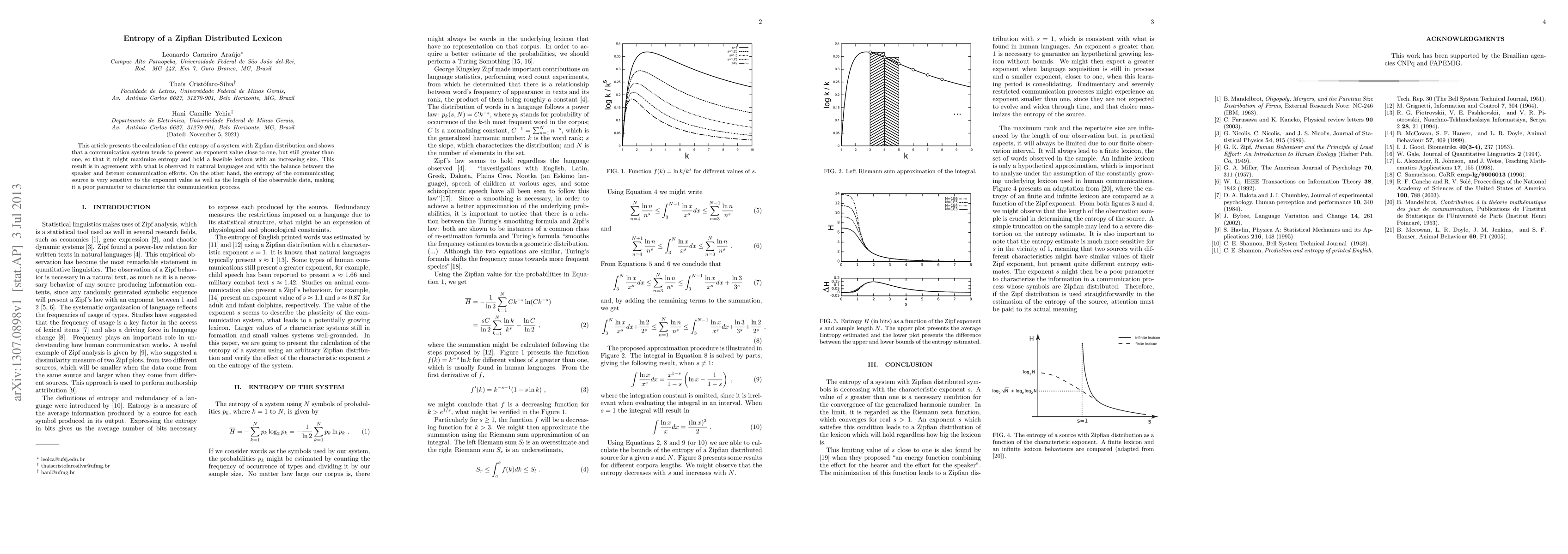 A methodological approach was used to analyze the entropy of a Zipf distribution