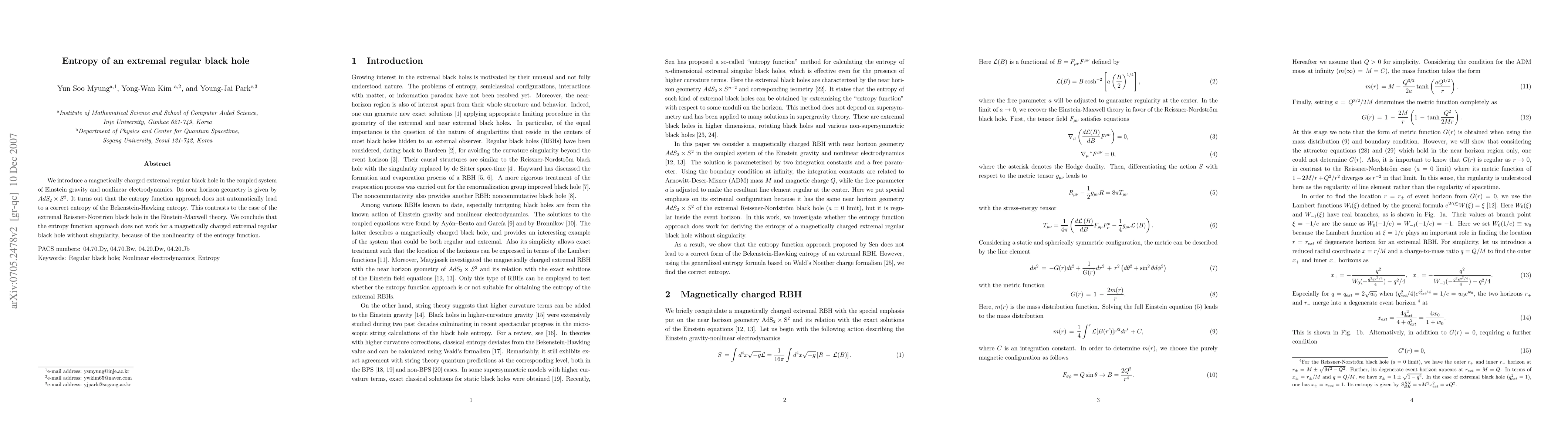 Summary: The paper discusses a magnetically charged extremal regular black hole in Einstein gravity with nonlinear electrodynamics, finding that the entropy function approach fails to correctly determine the Bekenstein-Hawking entropy due to the nonlinearity involved, unlike in the case of the Reissner-Nordström black hole.