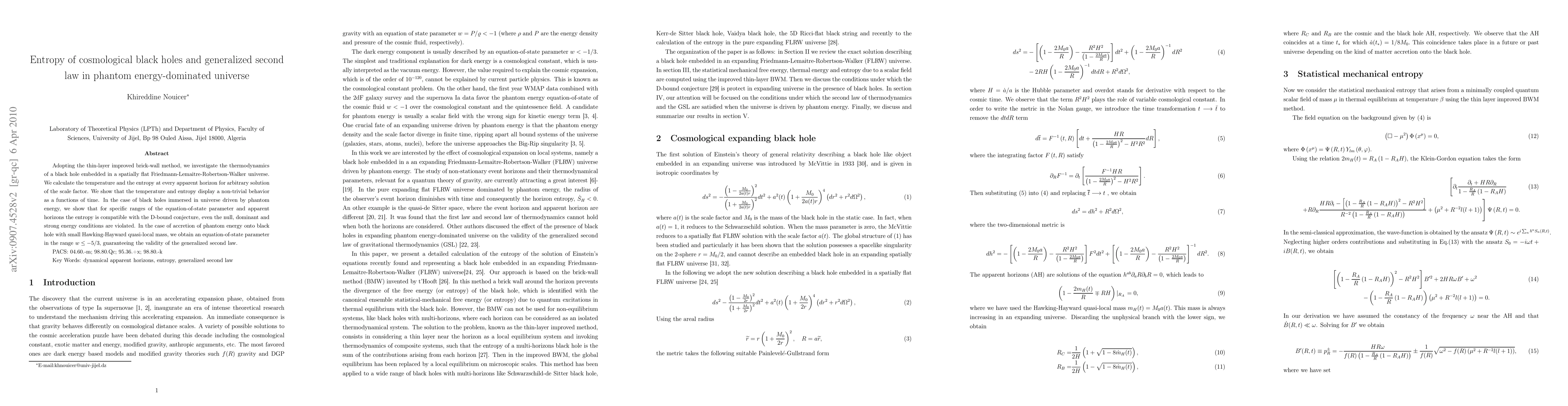 This paper explores the thermodynamics of black holes in a phantom energy-dominated universe using the thin-layer improved brick-wall method. It finds that black hole entropy and temperature exhibit non-trivial time-dependent behavior, and confirms the generalized second law under specific phantom energy conditions.
