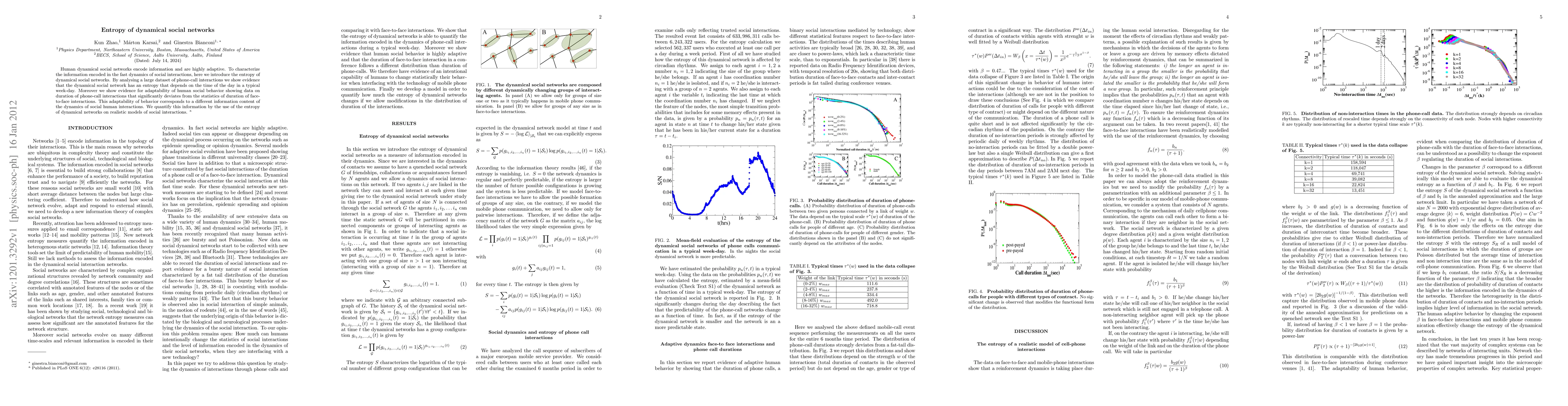 This paper introduces the concept of entropy for dynamical social networks to characterize the information in fast social interactions. Analysis of phone-call data reveals that social network entropy varies with the time of day and shows adaptability in phone-call durations differing from face-to-face interactions, indicating a distinct information content in social dynamics.