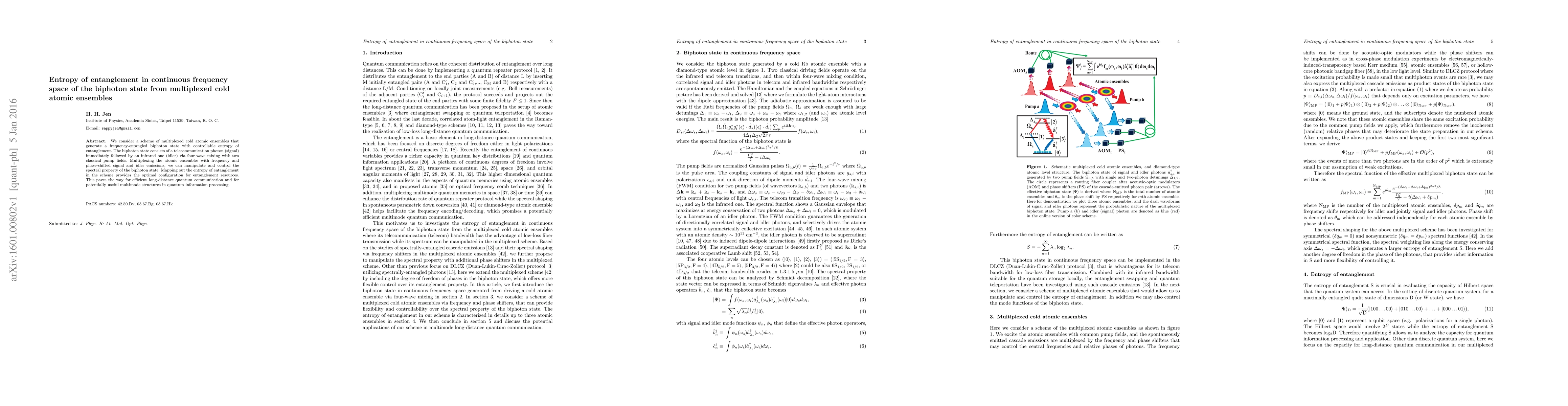 This research explores a scheme using multiplexed cold atomic ensembles to generate a frequency-entangled biphoton state, enabling control over the entropy of entanglement. The study aims to optimize entanglement resources for long-distance quantum communication and multimode quantum information processing.