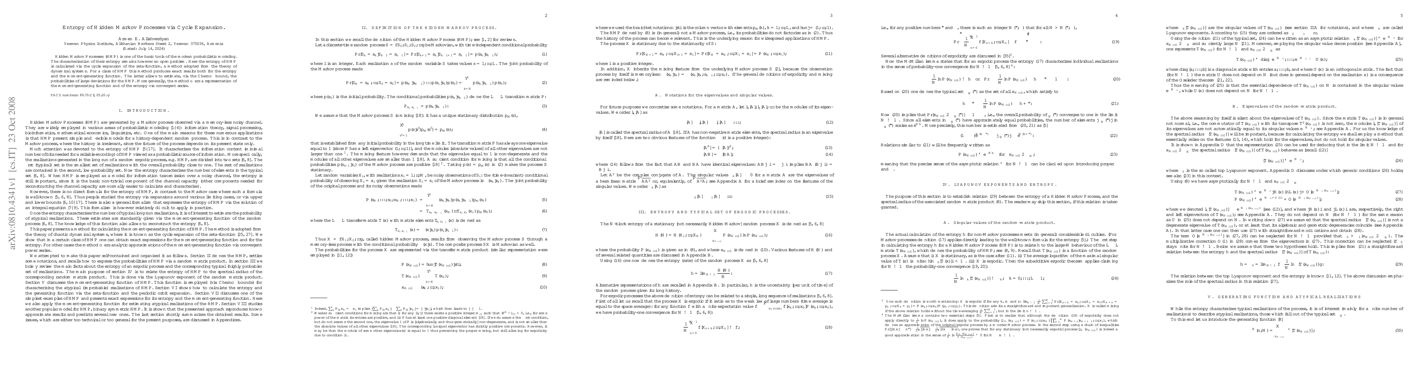 Researchers developed a new method to calculate entropy for Hidden Markov Processes using cycle expansion of the zeta-function, providing exact results for a class of HMPs.