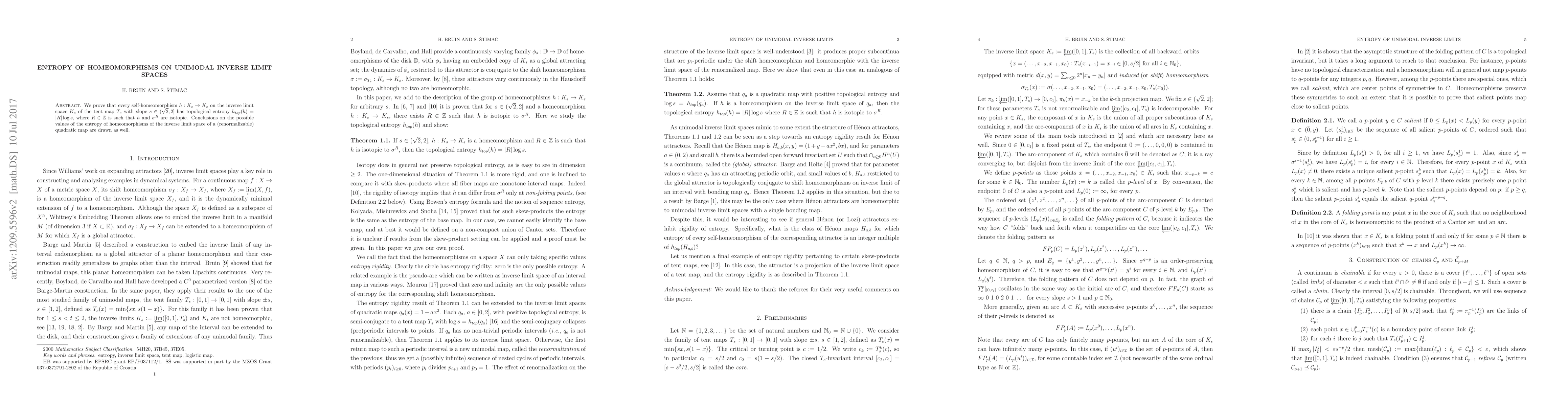 We prove that every self-homeomorphism $h : K_s \to K_s$ on the inverse limit space $K_s$ of the tent map $T_s$ with slope $s \in (\sqrt 2, 2]$ has topological entropy $\htop(h) = |R| \log s$, where $R \in \Z$ is such that $h$ and $\sigma^R$ are isotopic. Conclusions on the possible values of the entropy of homeomorphisms of the inverse limit space of a (renormalizable) quadratic map are drawn as well.
