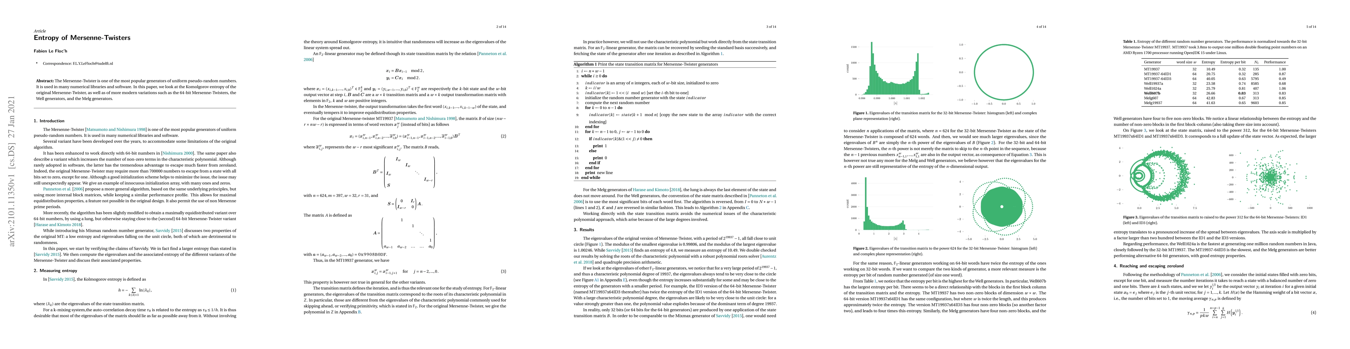 The Mersenne-Twister is one of the most popular generators of uniform pseudo-random numbers. It is used in many numerical libraries and software. In this paper, we look at the Komolgorov entropy of the original Mersenne-Twister, as well as of more modern variations such as the 64-bit Mersenne-Twisters, the Well generators, and the Melg generators.