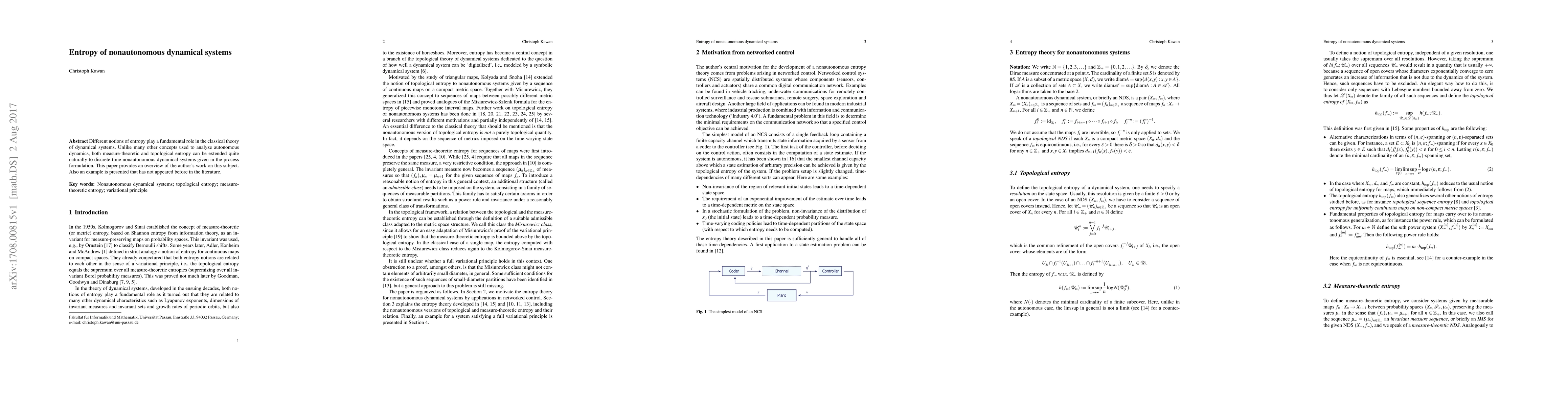 Different notions of entropy play a fundamental role in the classical theory of dynamical systems. Unlike many other concepts used to analyze autonomous dynamics, both measure-theoretic and topological entropy can be extended quite naturally to discrete-time nonautonomous dynamical systems given in the process formulation. This paper provides an overview of the author's work on this subject. Also an example is presented that has not appeared before in the literature.
