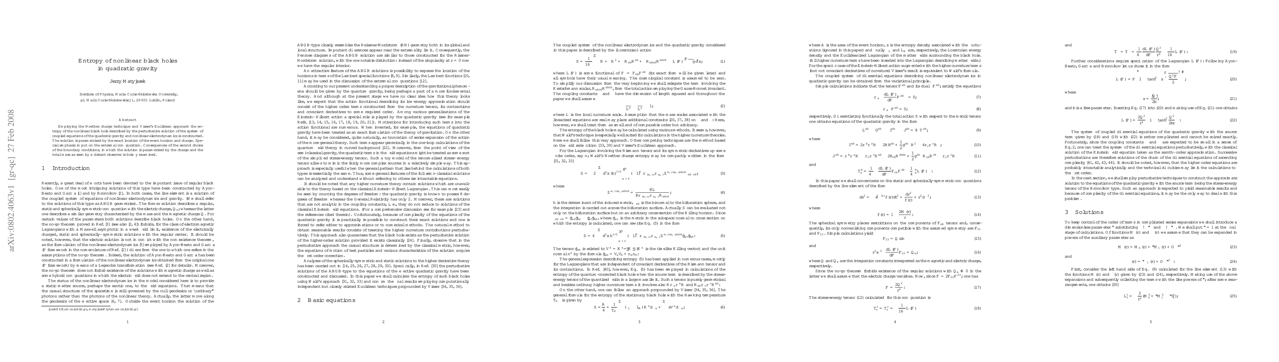 Employing the Noether charge technique and Visser's Euclidean approach the entropy of the nonlinear black hole described by the perturbative solution of the system of coupled equations of the quadratic gravity and nonlinear electrodynamics is constructed. The solution is parametrized by the exact location of the event horizon and charge. Special emphasis in put on the extremal configuration. Consequences of the second choice of the boundary conditions, in which the solution is paramerized by the charge and the total mass as seen by a distant observer is briefly examined.