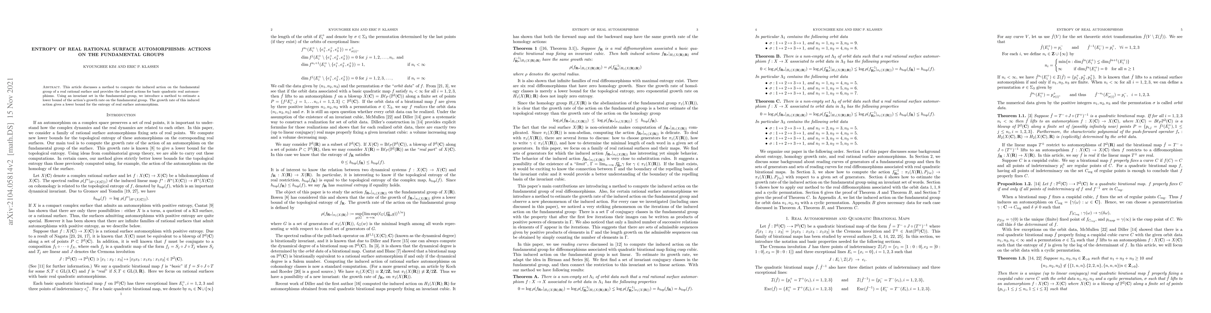 This article discusses a method to compute the induced action on the fundamental group of a real rational surface and provides the induced actions for basic quadratic real automorphisms. Using an invariant set in the fundamental group, we introduce a method to estimate a lower bound of the action's growth rate on the fundamental group. The growth rate of this induced action gives a lower bound for the entropy of real surface automorphism.