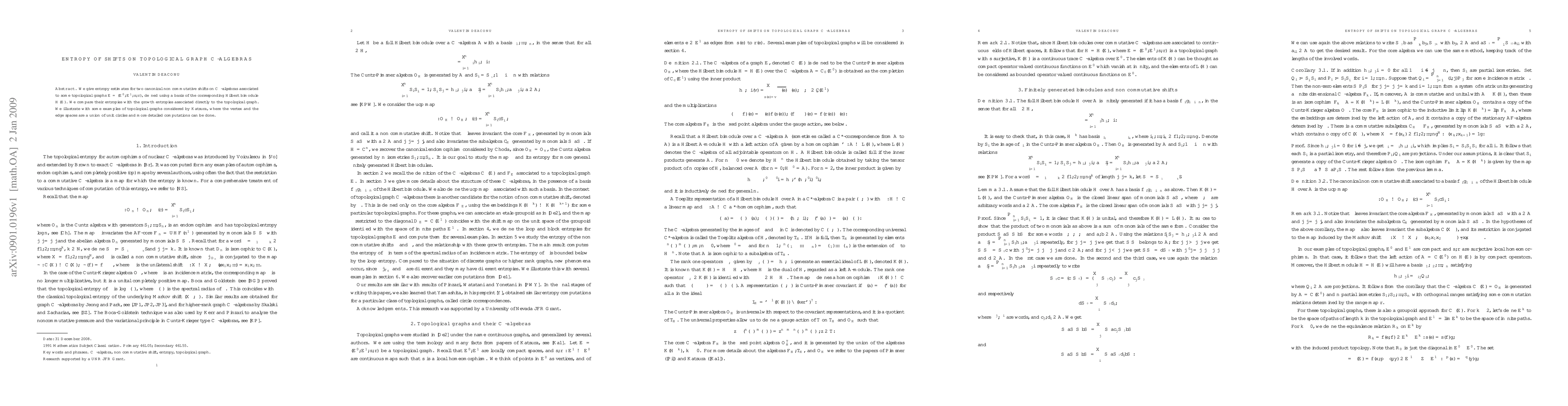 We give entropy estimates for two canonical non commutative shifts on $C^*$-algebras associated to some topological graphs $E=(E^0,E^1,s,r)$, defined using a basis of the corresponding Hilbert bimodule $H(E)$. We compare their entropies with the growth entropies associated directly to the topological graph. We illustrate with some examples of topological graphs considered by Katsura, where the vertex and the edge spaces are a union of unit circles and more detailed computations can be done.