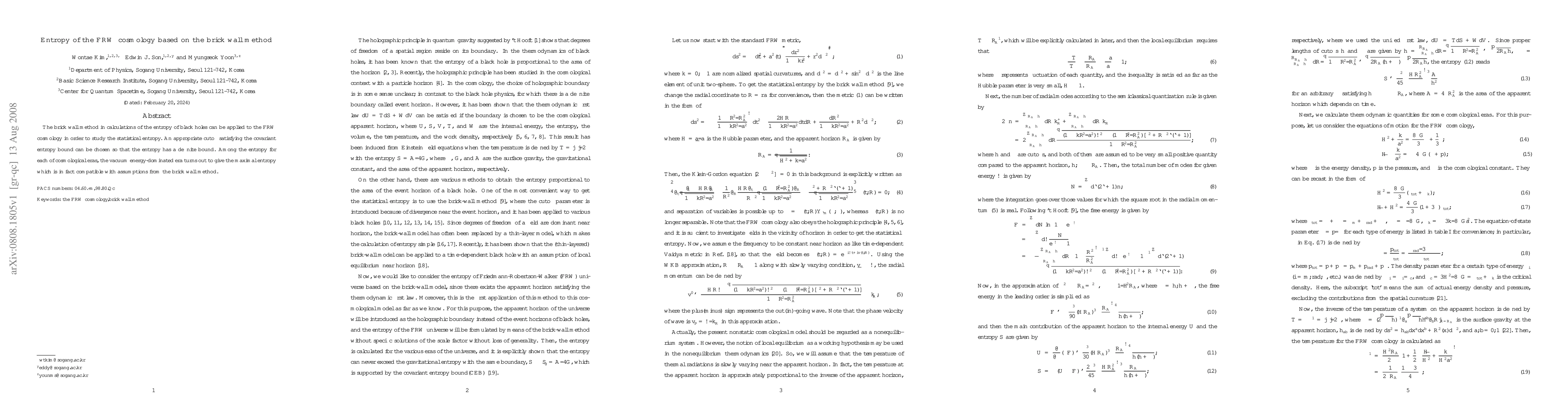 This paper applies the brick wall method to determine the statistical entropy of FRW cosmology, finding a covariant entropy bound. The vacuum energy-dominated era exhibits the highest entropy, consistent with the method's assumptions.