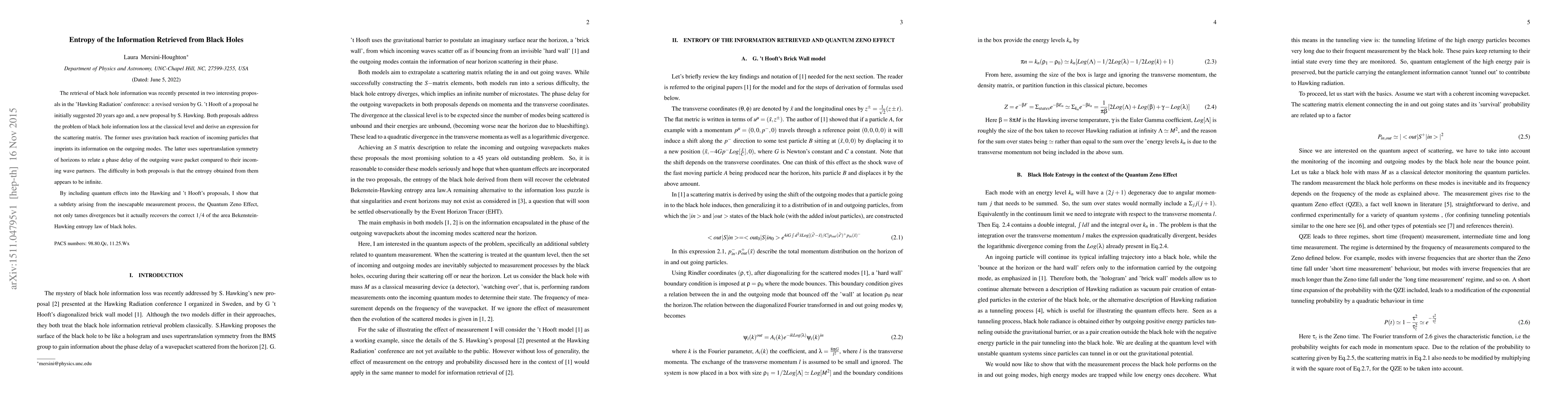 The retrieval of black hole information was recently presented in two interesting proposals in the 'Hawking Radiation' conference: a revised version by G. 't Hooft of a proposal he initially suggested 20 years ago and, a new proposal by S. Hawking. Both proposals address the problem of black hole information loss at the classical level and derive an expression for the scattering matrix. The former uses gravitation back reaction of incoming particles that imprints its information on the outgoing modes. The latter uses supertranslation symmetry of horizons to relate a phase delay of the outgoing wave packet compared to their incoming wave partners. The difficulty in both proposals is that the entropy obtained from them appears to be infinite. By including quantum effects into the Hawking and 't Hooft's proposals, I show that a subtlety arising from the inescapable measurement process, the Quantum Zeno Effect, not only tames divergences but it actually recovers the correct $1/4$ of the area Bekenstein-Hawking entropy law of black holes.