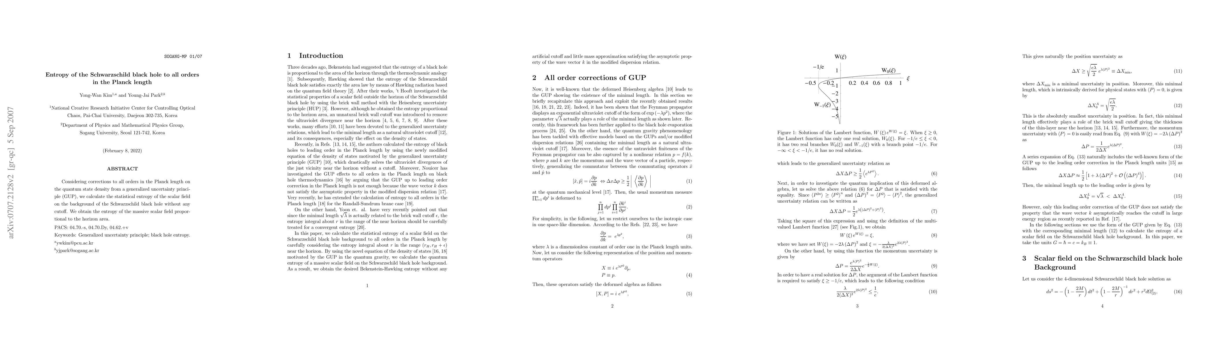 Summary: This paper calculates the entropy of a Schwarzschild black hole incorporating corrections to all orders in the Planck length based on a generalized uncertainty principle, resulting in an entropy proportional to the horizon area without requiring a cutoff.
