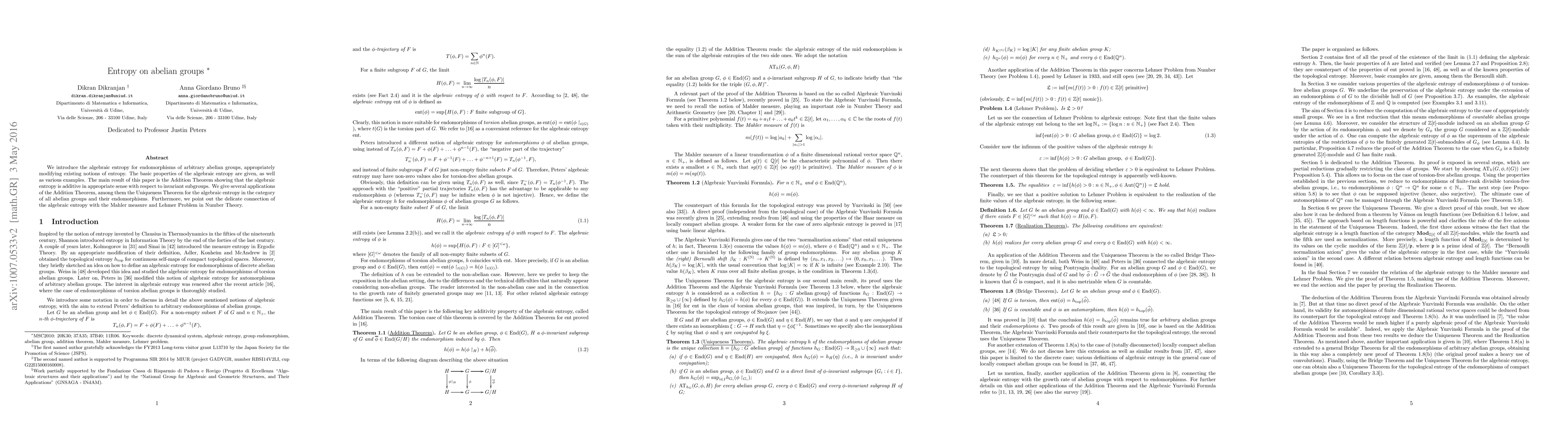 The paper presents a novel approach to defining and analyzing entropy on abelian groups, extending previous work on topological entropy and providing new insights into the structure of dynamical systems on these groups.
