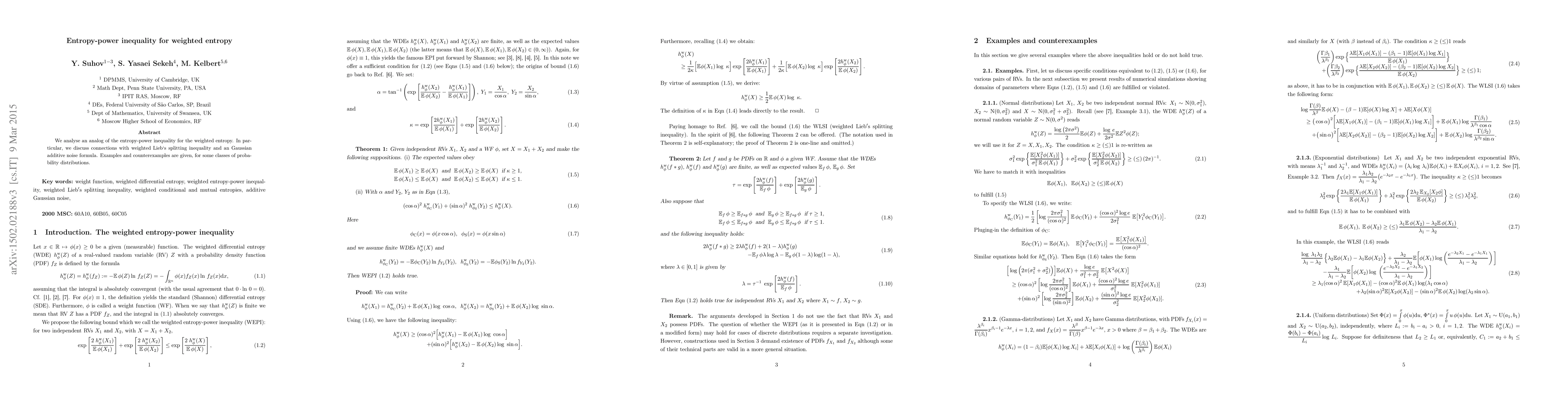 Summary: This paper investigates an extension of the entropy-power inequality to weighted entropy, providing insights into its properties and implications. The study aims to understand how the inequality behaves under weighted contexts.