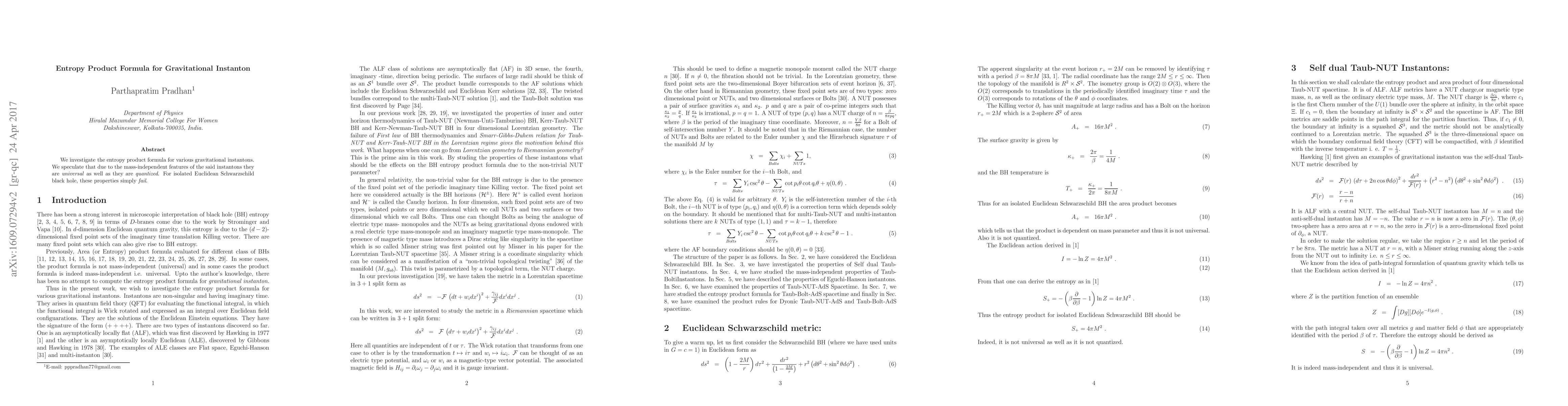 The paper presents a detailed analysis of entropy product formulas for various gravitational instantons, demonstrating their mass-independent features, universality, and quantization.