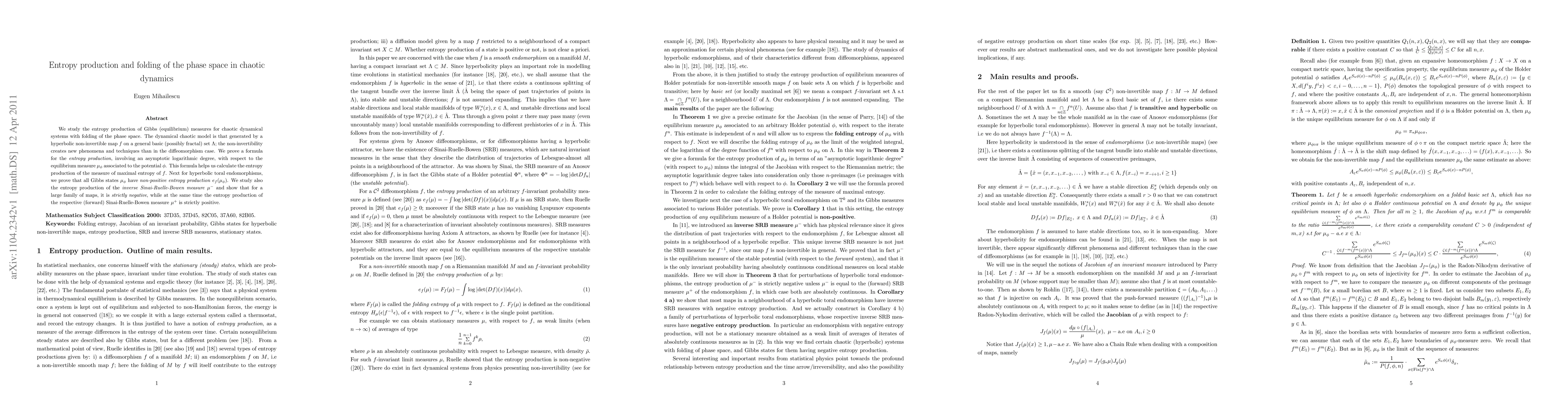 This paper studies entropy production in chaotic dynamics, specifically in systems with folding of the phase space, and finds that Gibbs states have non-positive entropy production for hyperbolic toral endomorphisms.