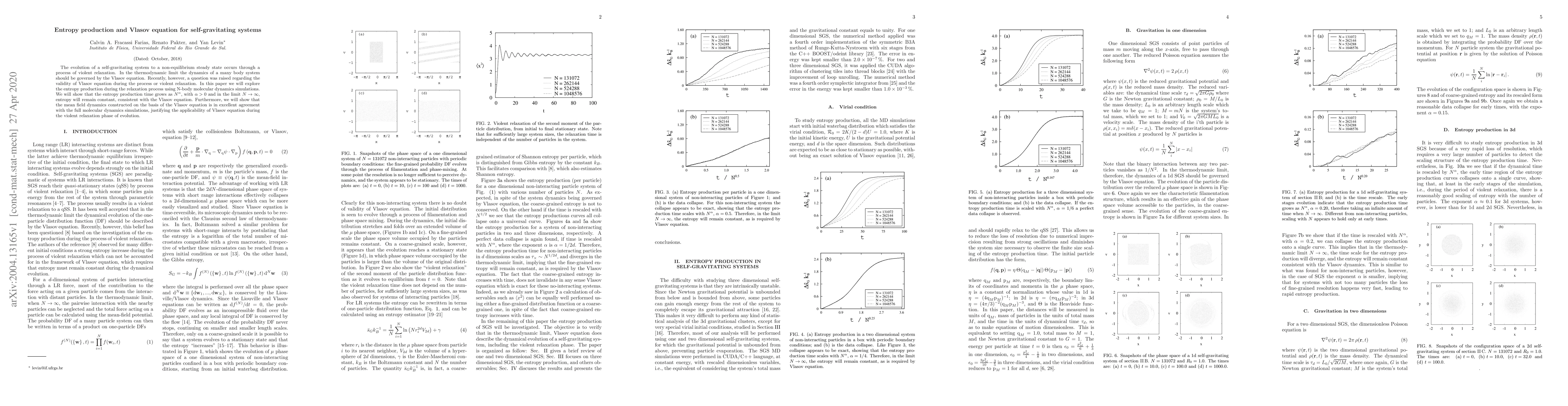The evolution of a self-gravitating system to a non-equilibrium steady state occurs through a process of violent relaxation. In the thermodynamic limit the dynamics of a many body system should be governed by the Vlasov equation. Recently, however, a question was raised regarding the validity of Vlasov equation during the process of violent relaxation. In this paper we will explore the entropy production during the relaxation process using N-body molecular dynamics simulations. We will show that the entropy production time grows as $N^\alpha$, with $\alpha > 0$ and in the limit $N \rightarrow \infty$, entropy will remain constant, consistent with the Vlasov equation. Furthermore, we will show that the mean field dynamics constructed on the basis of the Vlasov equation is in excellent agreement with the full molecular dynamics simulations, justifying the applicability of Vlasov equation during the violent relaxation phase of evolution.