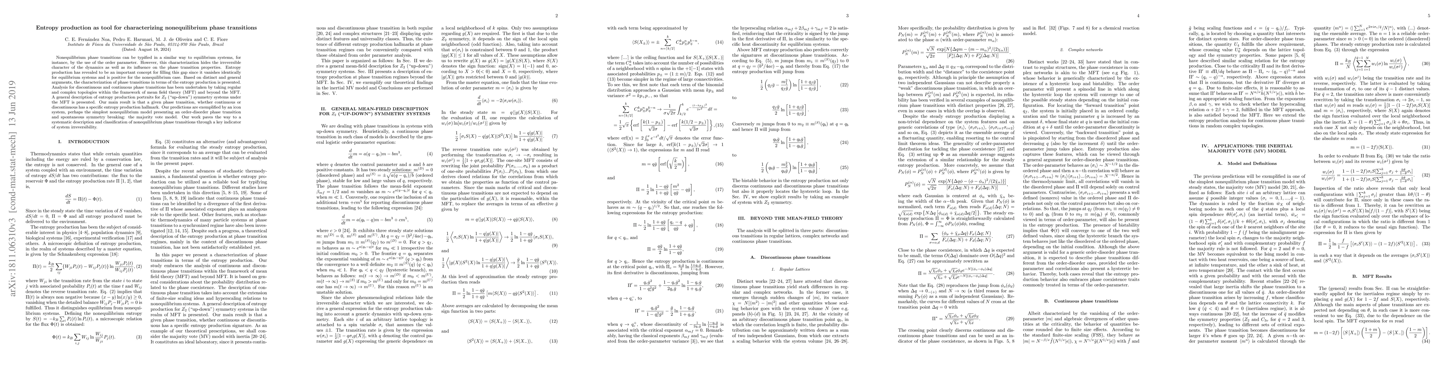 This paper proposes entropy production as a key indicator for characterizing nonequilibrium phase transitions, showing that it provides insights into the irreversible dynamics and properties of these transitions. The study uses mean field theory and beyond to analyze both discontinuous and continuous phase transitions, revealing distinct entropy production signatures for different types of transitions.
