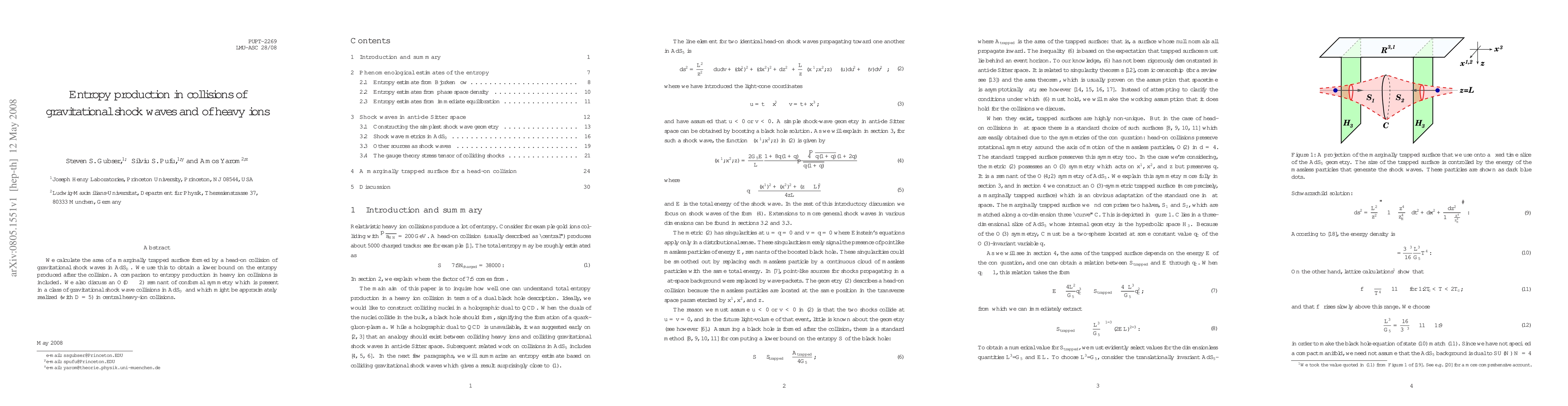 We calculate the area of a marginally trapped surface formed by a head-on collision of gravitational shock waves in AdS_D. We use this to obtain a lower bound on the entropy produced after the collision. A comparison to entropy production in heavy ion collisions is included. We also discuss an O(D-2) remnant of conformal symmetry which is present in a class of gravitational shock wave collisions in AdS_D and which might be approximately realized (with D=5) in central heavy-ion collisions.