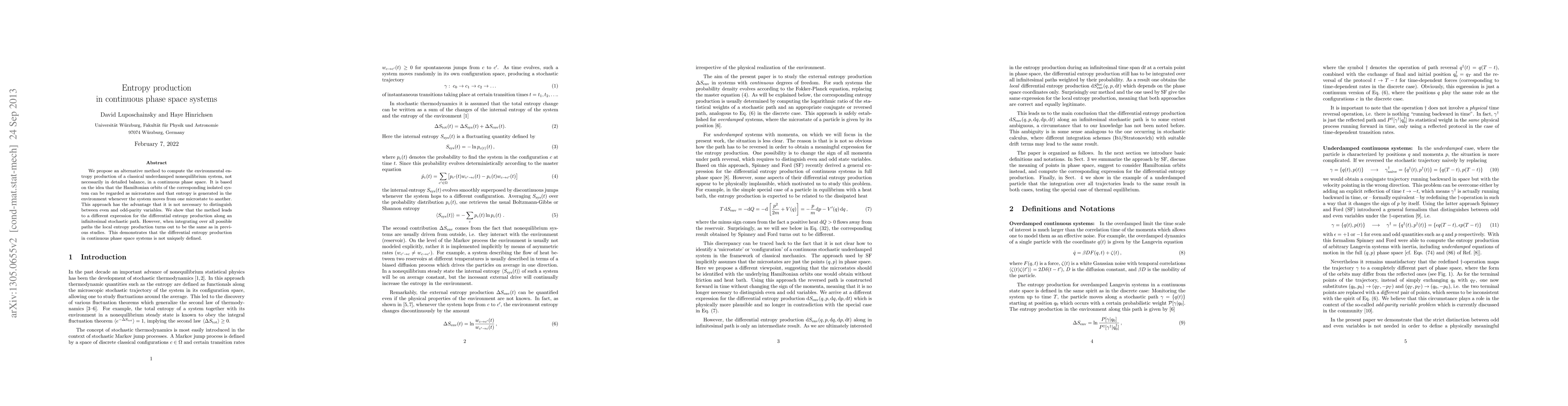 We propose an alternative method to compute the entropy production of a classical underdamped nonequilibrium system in a continuous phase space. This approach has the advantage that it is not necessary to distinguish between even and odd-parity variables. We show that the method leads to the same local entropy production as in previous studies while the differential entropy production along a stochastic trajectory turns out to be different. This demonstrates that the differential entropy production in continuous phase space systems is not uniquely defined.