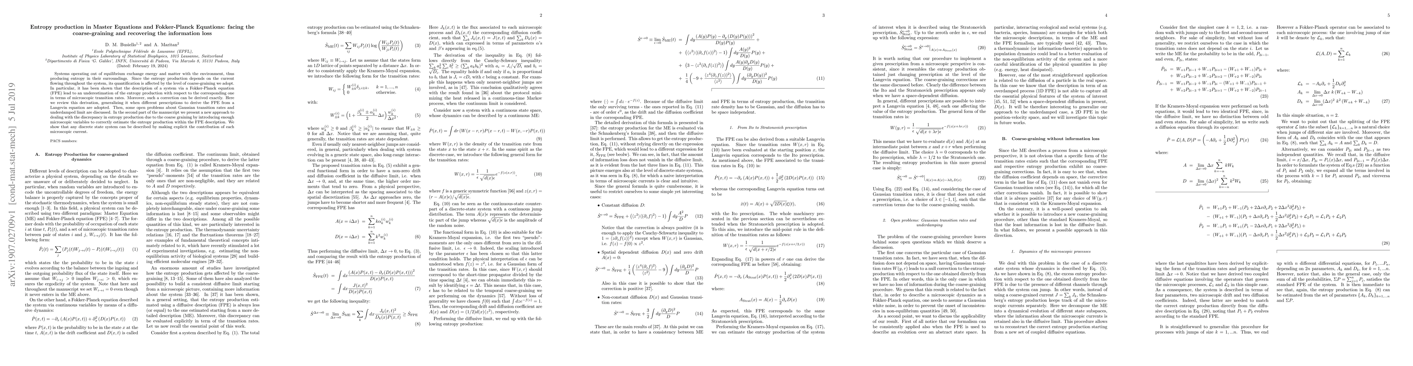 This paper reviews the derivation of entropy production corrections in Fokker-Planck equations (FPEs) compared to microscopic transition rates, addressing the information loss due to coarse-graining. It proposes a new method to accurately estimate entropy production within FPEs by incorporating the contributions of microscopic currents.