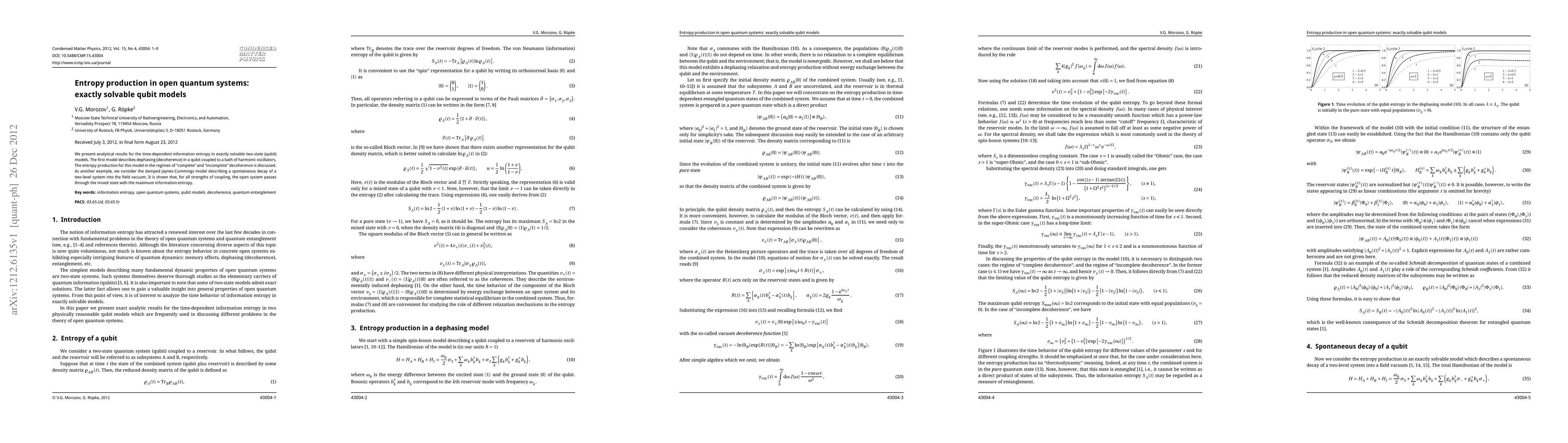 This paper provides analytical results for the time-dependent information entropy in exactly solvable qubit models, including dephasing in a qubit coupled to harmonic oscillators and the damped Jaynes-Cummings model. It reveals that the open system always passes through a mixed state with maximum entropy regardless of coupling strength.