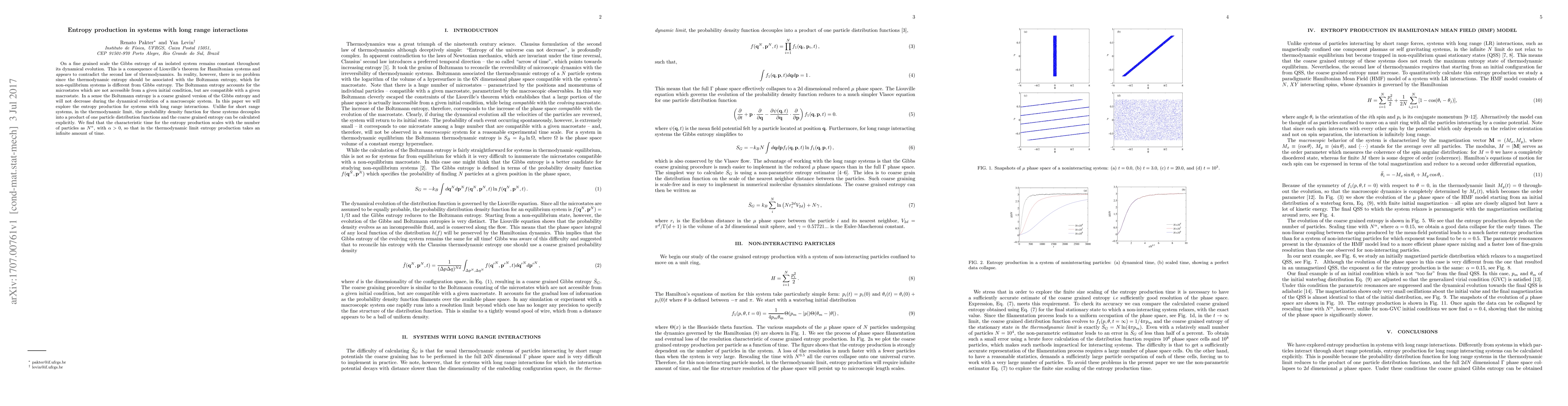 On a fine grained scale the Gibbs entropy of an isolated system remains constant throughout its dynamical evolution. This is a consequence of Liouville's theorem for Hamiltonian systems and appears to contradict the second law of thermodynamics. In reality, however, there is no problem since the thermodynamic entropy should be associated with the Boltzmann entropy, which for non-equilibrium systems is different from Gibbs entropy. The Boltzmann entropy accounts for the microstates which are not accessible from a given initial condition, but are compatible with a given macrostate. In a sense the Boltzmann entropy is a coarse grained version of the Gibbs entropy and will not decrease during the dynamical evolution of a macroscopic system. In this paper we will explore the entropy production for systems with long range interactions. Unlike for short range systems, in the thermodynamic limit, the probability density function for these systems decouples into a product of one particle distribution functions and the coarse grained entropy can be calculated explicitly. We find that the characteristic time for the entropy production scales with the number of particles as $N^\alpha$, with $\alpha > 0$, so that in the thermodynamic limit entropy production takes an infinite amount of time.