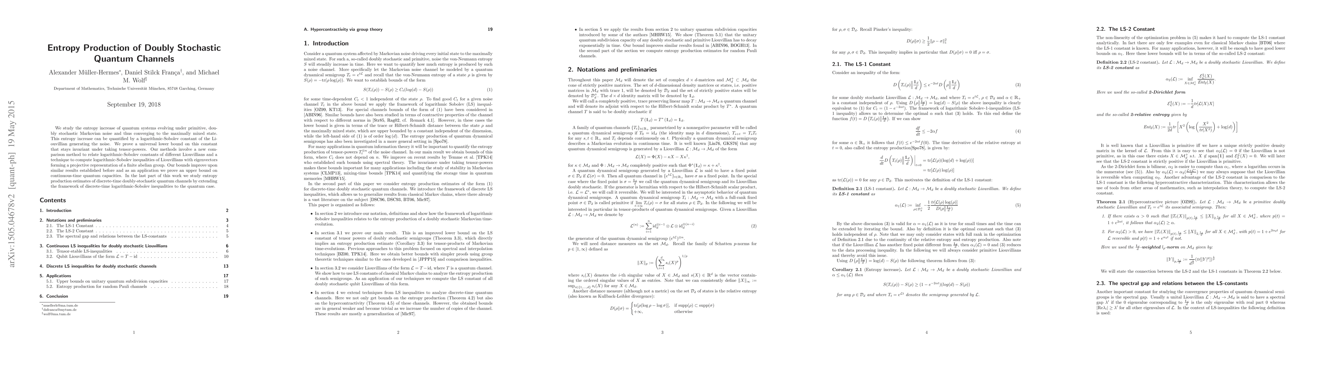 The work extends classical logarithmic Sobolev inequalities to the quantum domain, providing novel insights into the entropy production of doubly stochastic quantum channels and offering improved bounds on quantum capacities.