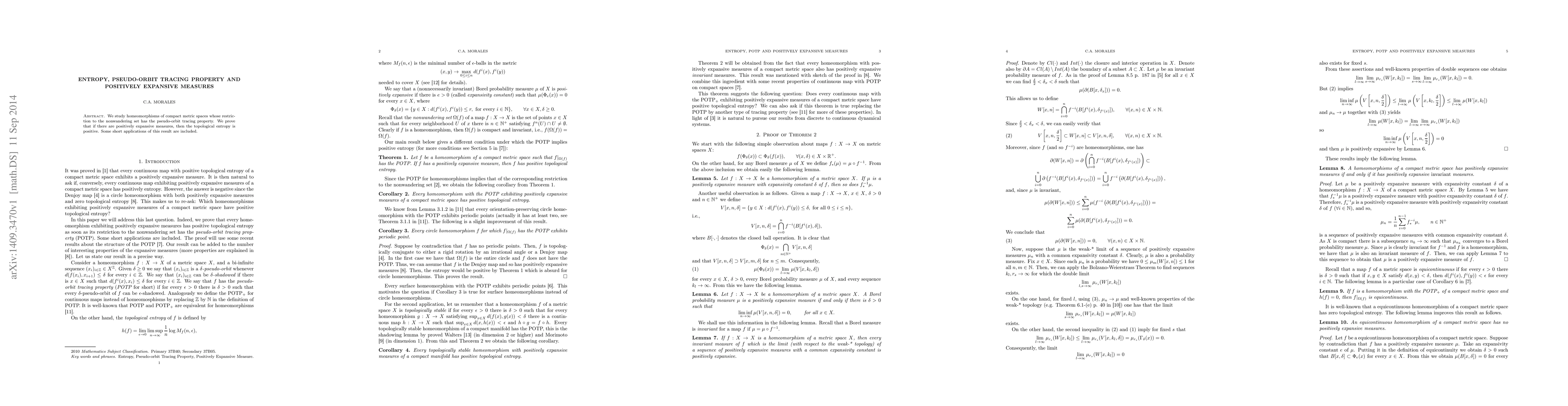 This paper investigates homeomorphisms with the pseudo-orbit tracing property on compact metric spaces, proving that the presence of positively expansive measures leads to positive topological entropy. The findings also include some practical applications of this result.