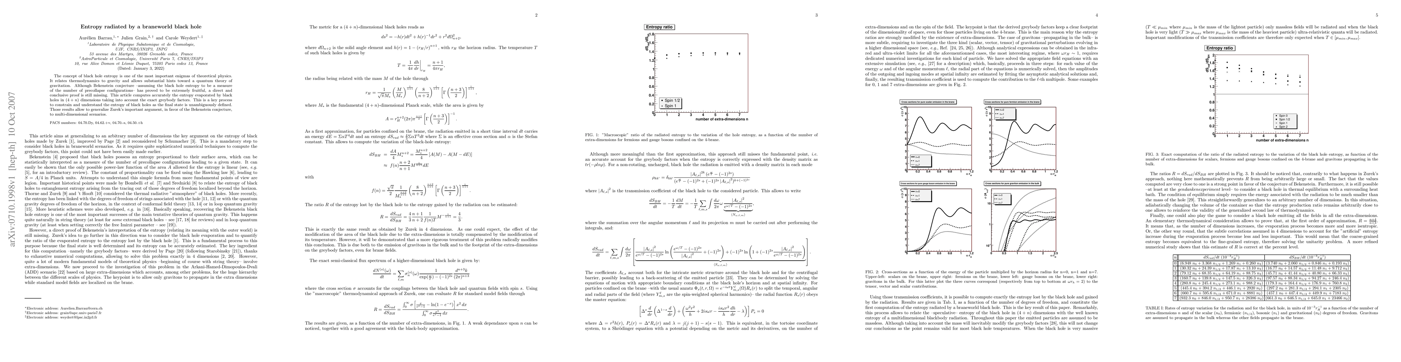 The concept of black hole entropy is one of the most important enigmas of theoretical physics. It relates thermodynamics to gravity and allows substantial hints toward a quantum theory of gravitation. Although Bekenstein conjecture -assuming the black hole entropy to be a measure of the number of precollapse configurations- has proved to be extremely fruitful, a direct and conclusive proof is still missing. This article computes accurately the entropy evaporated by black holes in (4+n) dimensions taking into account the exact greybody factors. This is a key process to constrain and understand the entropy of black holes as the final state is unambiguously defined. Those results allow to generalize Zurek's important argument, in favor of the Bekenstein conjecture, to multi-dimensional scenarios.