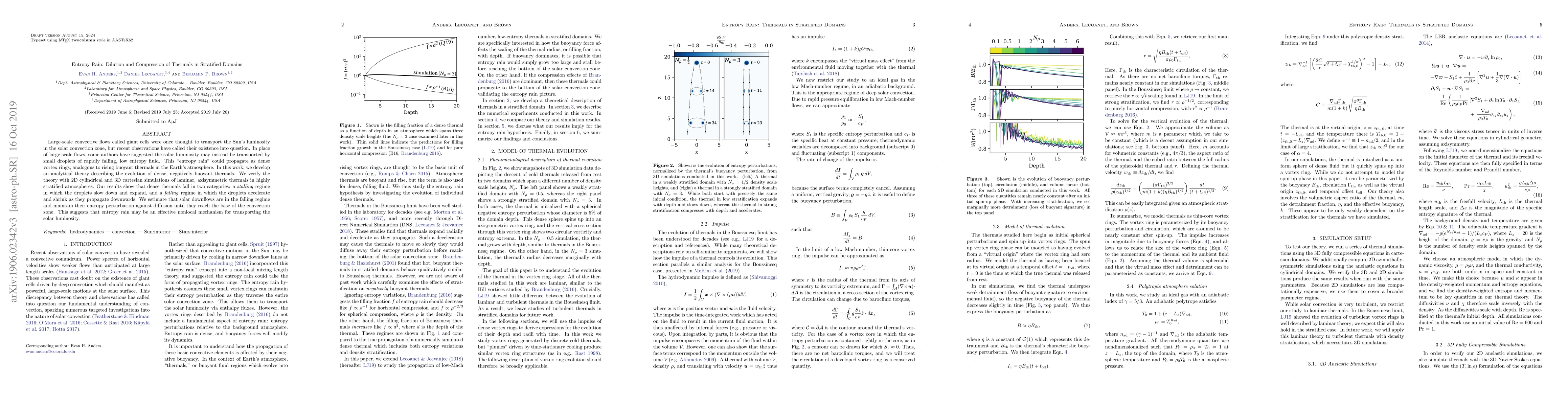 Researchers propose a new mechanism for transporting solar luminosity called entropy rain, which involves small droplets of low-entropy fluid falling as dense vortex rings in the Sun's convection zone. They find that these droplets maintain their entropy perturbation as they fall, suggesting a nonlocal mechanism for transporting energy.
