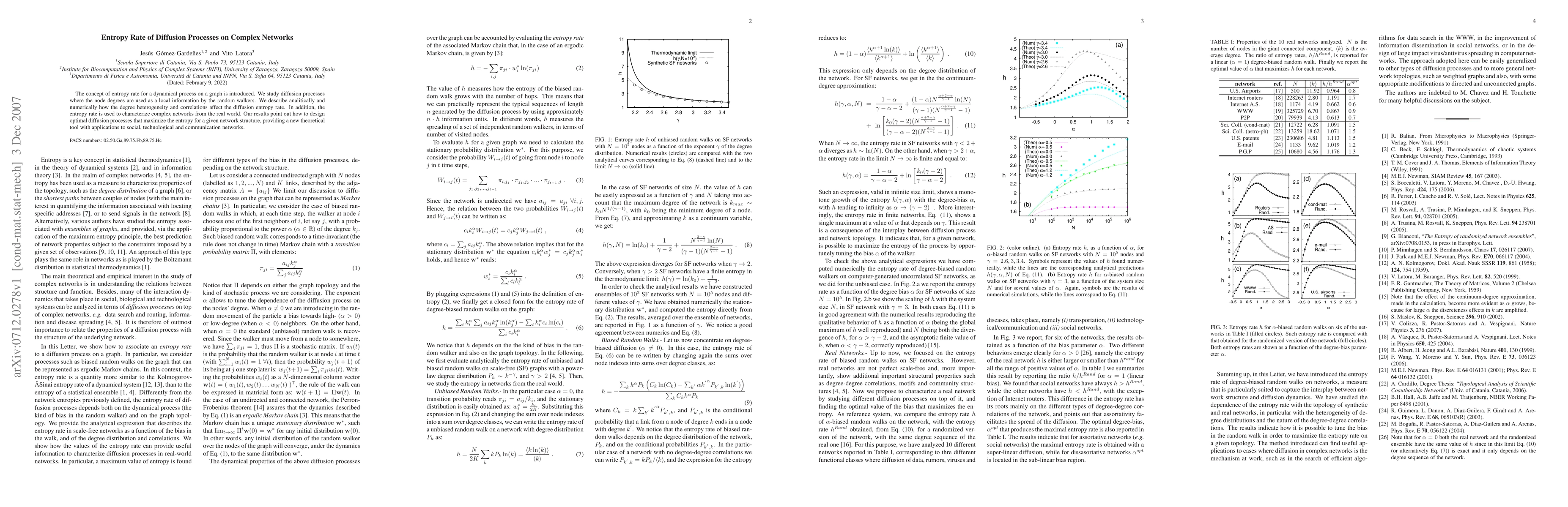 This paper introduces the concept of entropy rate for diffusion processes on complex networks, analyzing how node degree heterogeneity and correlations impact this rate. It provides both analytical and numerical insights, offering a new theoretical tool for designing optimal diffusion processes in real-world networks.